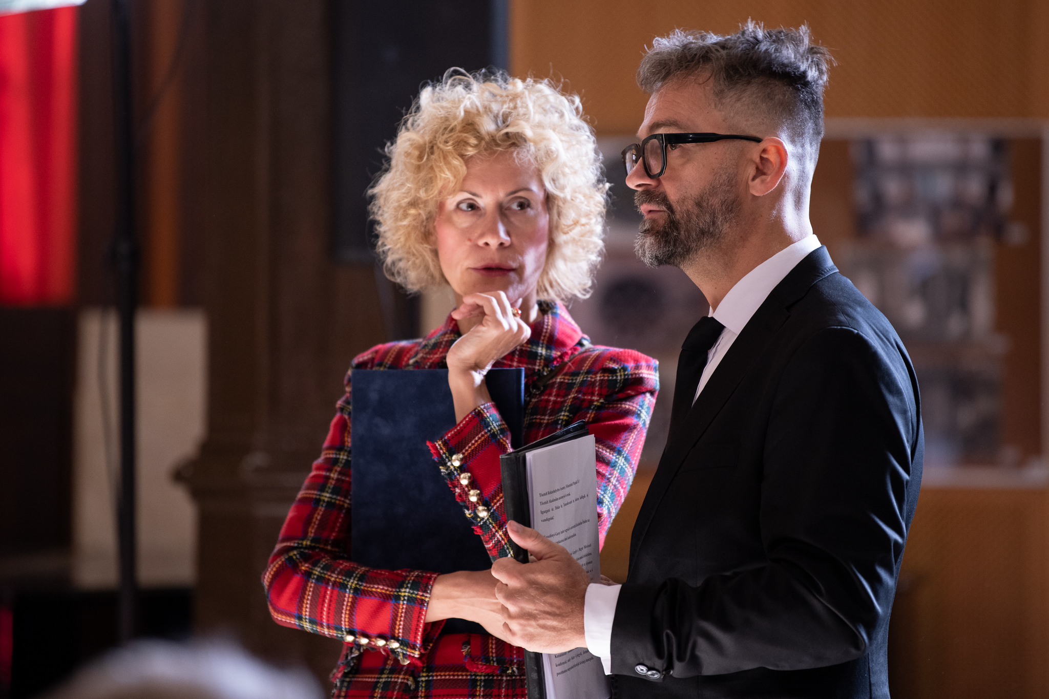 Egy rövid szünet után meghallgathattuk a Széchenyi István Egyetem Művészeti Kar hallgatóinak előadásában, ősbemutató keretében Déri András Adagio és Allegrocky két zongorára című darabját, amelyet Scheller Naomi és Balog Claudia adott elő zongorán.