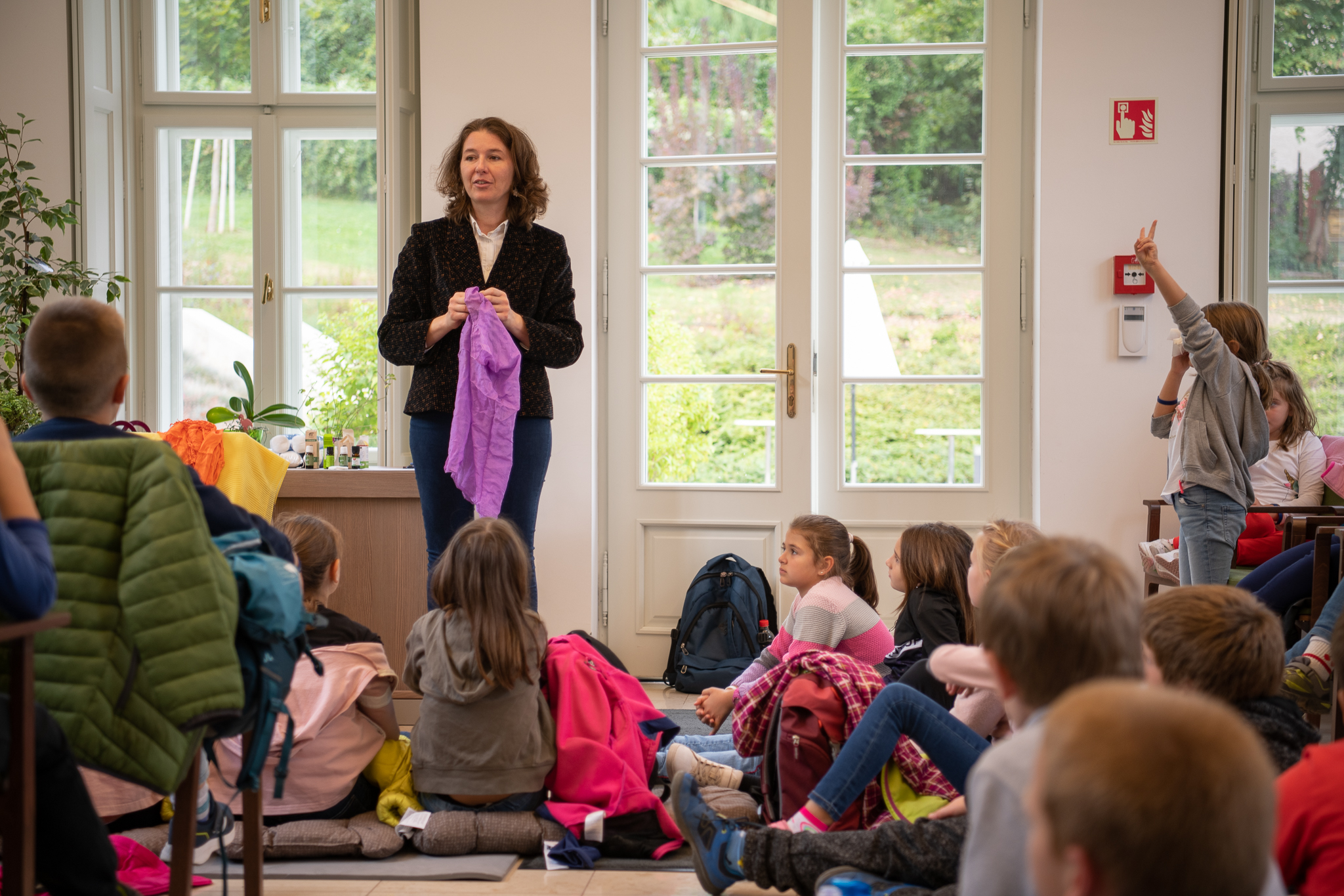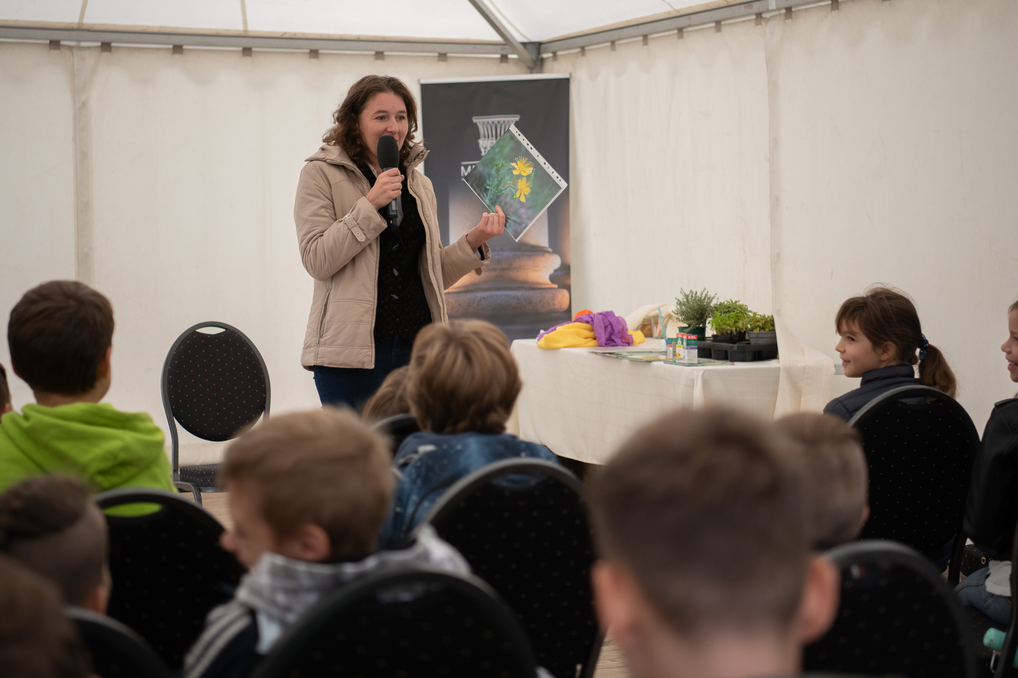 Délelőtt a regisztrált alsó tagozatos iskolás csoportok vették birtokba a kutatóintézetet, ahol az MMA Művészeti Ösztöndíjprogram ösztöndíjasával, Mechler Annával a Nadin és a varázstégely elnevezésű ismeretterjesztő foglalkozás részesei voltak. A gyermekek megismerkedtek a gyógynövényekkel és elkészítették saját gyógynövényes teájukat is.