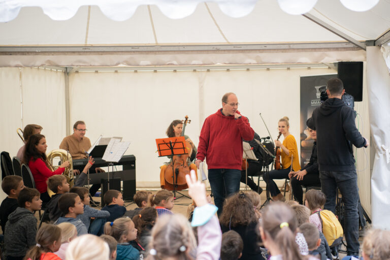 A zenés interaktív foglalkozás keretében pedig Windhager Ákos, az MMA MMKI tudományos munkatársa rávilágított arra, hogy a wagneri zenedráma-sorozat (A Niebelung gyűrűje) német mesékre épül, amelyeket az előadás visszaadott a gyerekeknek. Az ismert dallamok ezúttal karaktert váltottak, és gyerekdal, tánc, filmzene, illetve lassú galopp lett belőlük.