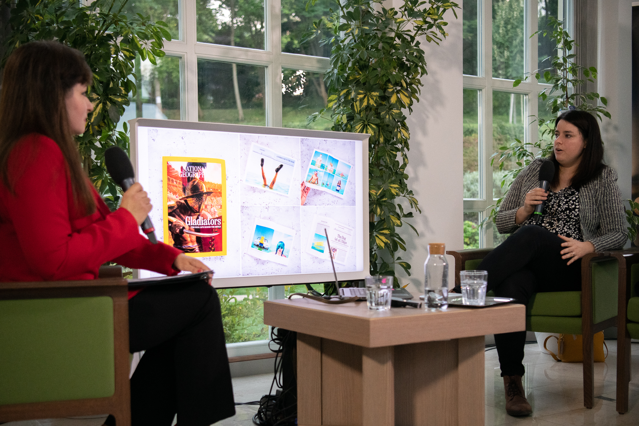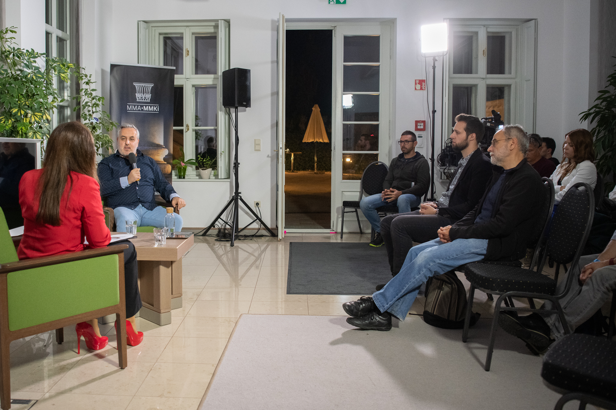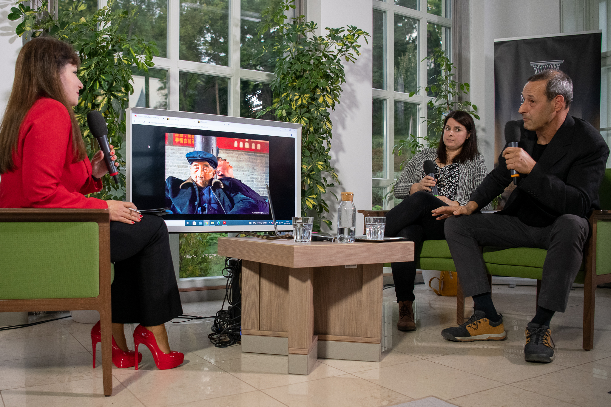 Az alkotókkal készült beszélgetés során többek közt szó került Somogyi Márk Kínai kis falak című sorozatáról, a távol-keleti élményekről és kultúráról, míg Pályi Zsófiát egy égető társadalmi-politikai jelenségről, a migrációt középpontba helyező Tranzitország című projektjéről is kérdezték. Az ellentétpárok okozta feszültség (érintetlen természet, béke – nyüzsgő városok, kínai diktatúra; iszlám vallás és háború – búcsújáróhelyek és keresztény értékrend, férfi–női látásmód) egy kellemes hangulatú beszélgetésben oldódott fel, amelynek középpontjában a fény–kép–ész állt.