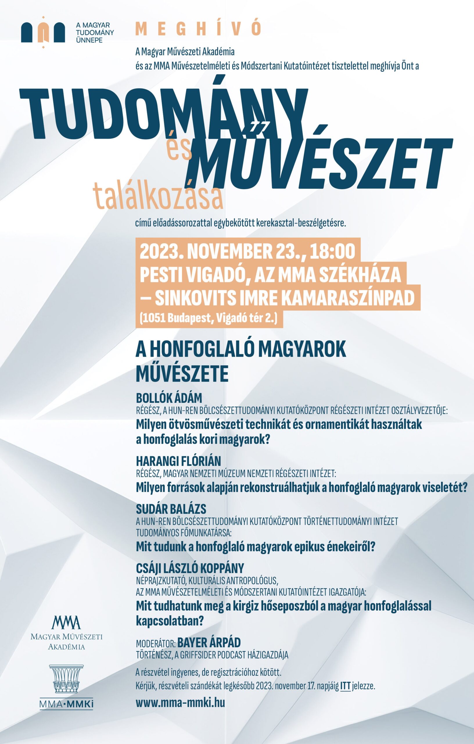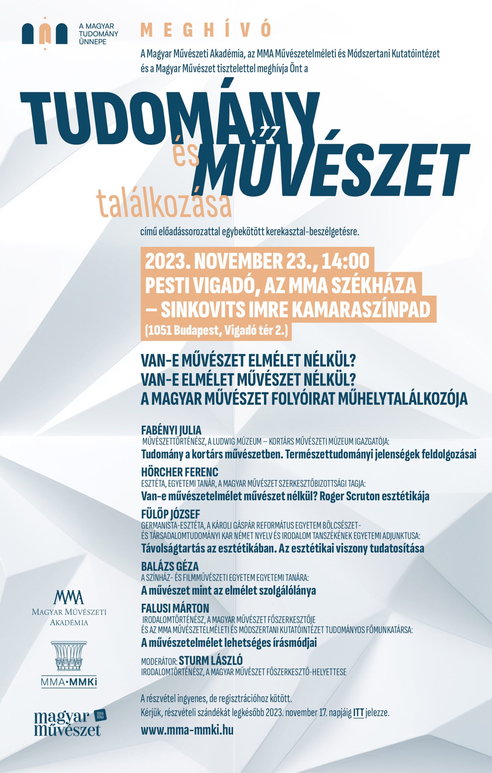 A rendezvények a Magyar Művészeti Akadémia és a Magyar Tudományos Akadémia között létrejött stratégiai együttműködés szellemében valósulnak meg.
