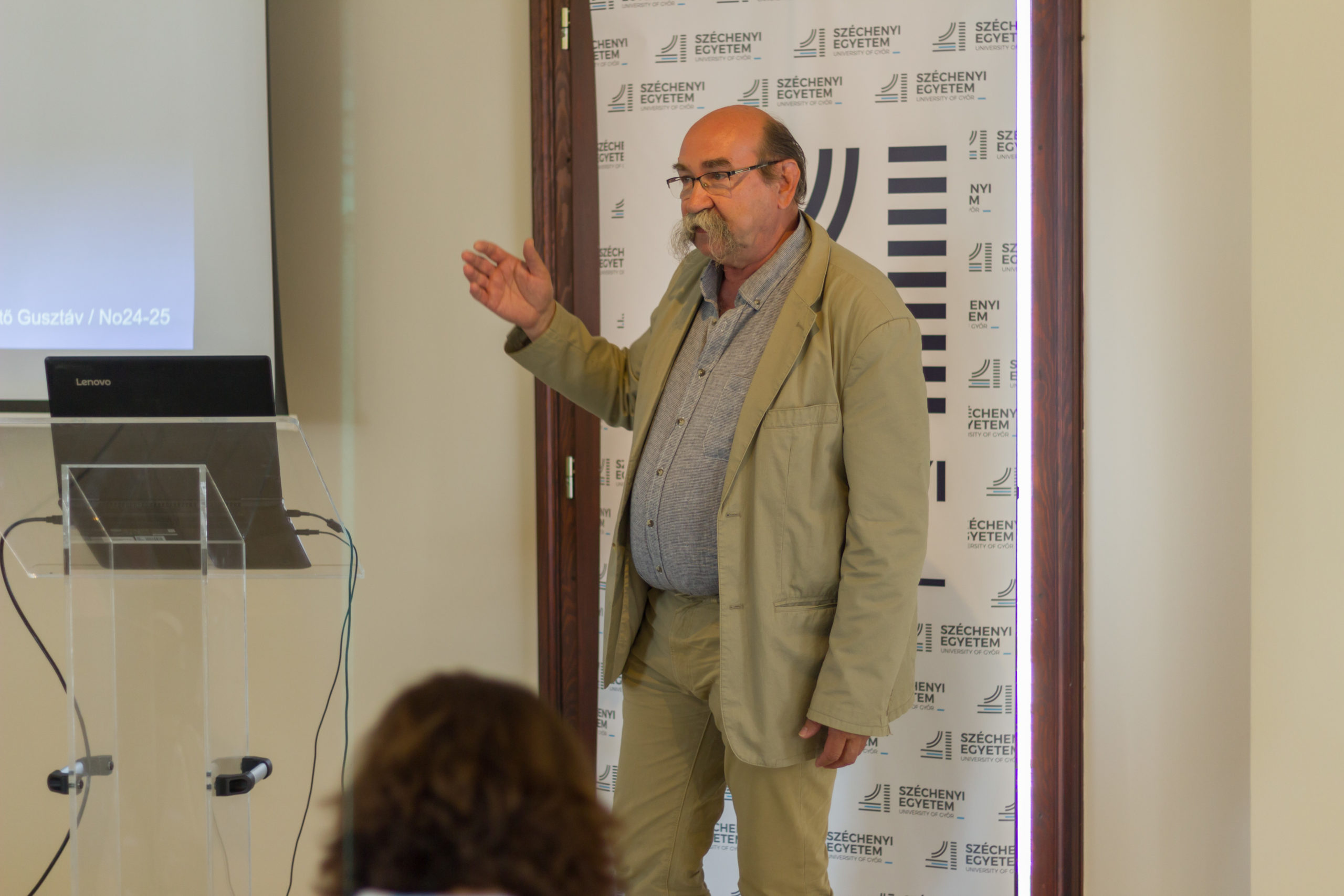 Somogyi Krisztina, a Széchenyi István Egyetem Művészeti Kar docense azt járta körbe prezentációjában, hogy milyen fontos tartalommal bír a test, a térforma és a mozgás összefüggése az építészetben. A transzdiszciplináris nézőpont szerint minden emberi élmény fizikai térben megy végbe és minden fizikai tér komponense az élménynek. Az előadó az épület, építészet recepcióját vizsgálta, amelynek fontos szempontjai, hogy mi a megítélés alapja, mire vonatkozik a kritika, miről és hogyan gondolkodunk az építészeti alkotással kapcsolatban, milyen viszonyban van az épület és az ember, ki ítéli meg. Hozzátette, az építészet közügy is, ezért fontos, hogy az emberek hogyan ítélik meg az adott épületet.