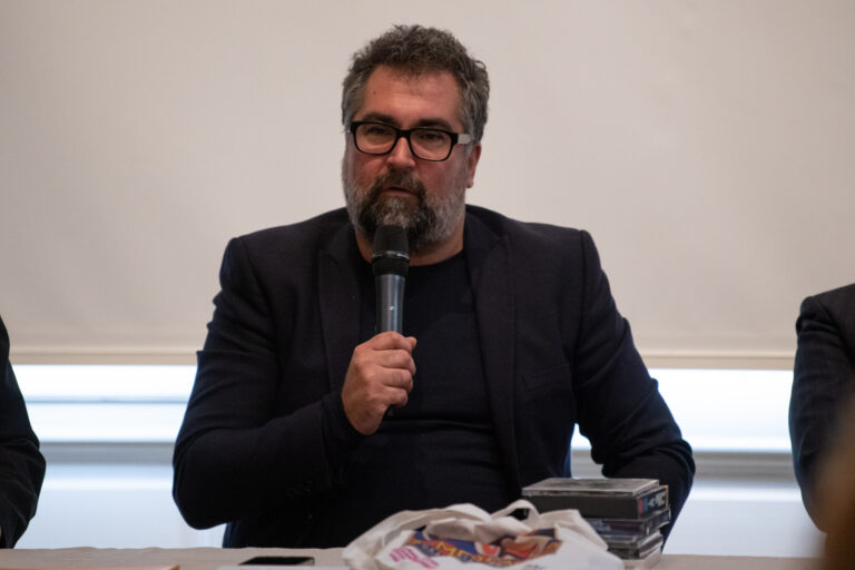 Böszörményi Gábor filmkritikus, szerkesztő, a Mozinet Kft. tulajdonosa és ügyvezetője a Toldi, a mozifilm és a Ruben Brandt, a gyűjtő moziforgalmazásáról osztott meg részleteket előadásában. A Mozinet évente nagyjából 15 filmet forgalmaz a magyar mozikban, ezekből egy-kettő animációs film. Az animációs filmjeikkel alternatívát próbálnak nyújtani a nagy hollywoodi rajzfilmeknek, olyan alkotásokat keresnek, amelyek technikájukban, témájukban, narratívájukban eltérnek a piacot uraló stúdiófilmektől. Beszámolt arról is, hogyan néz ki a mozifilmek forgalmazása a jelenlegi helyzetben és a Covid-időszak alatt, illetve hogyan készülnek a magyar mozik az energiaspórolásra.