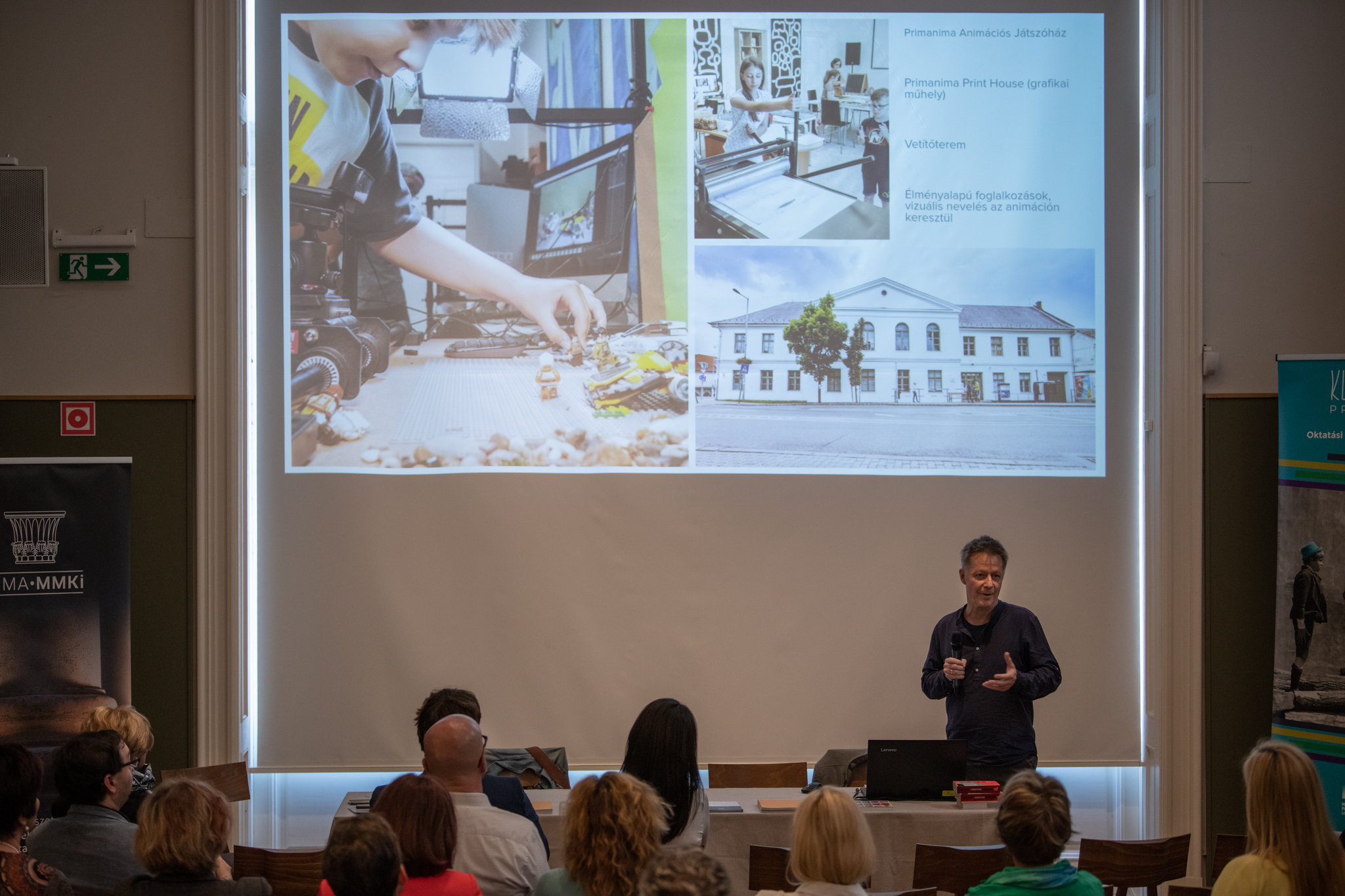 Patrovits Tamás animációsfilm-rendező, grafikusművész, művésztanár előadásában az általa és Orosz Anna Ida által megálmodott Primanima Animációs Játszóházat mutatta be a közönségnek. A játszóház célja, hogy a gyerekek ne csupán passzív nézői legyenek a mozgóképeknek, hanem maguk is alkotókká váljanak. Ennek érdekében ötvözik a hagyományos, analóg technikákat a digitális eszközökkel, és a résztvevők az élményalapú foglalkozások során elsajátított ismeretekkel felvértezve később otthon is bele tudnak vágni kisfilmek készítésébe. Hisznek abban, hogy a játszóházi foglalkozások és a szakkörök segítségével mindenki felfedezheti az animációban rejlő örömöt.