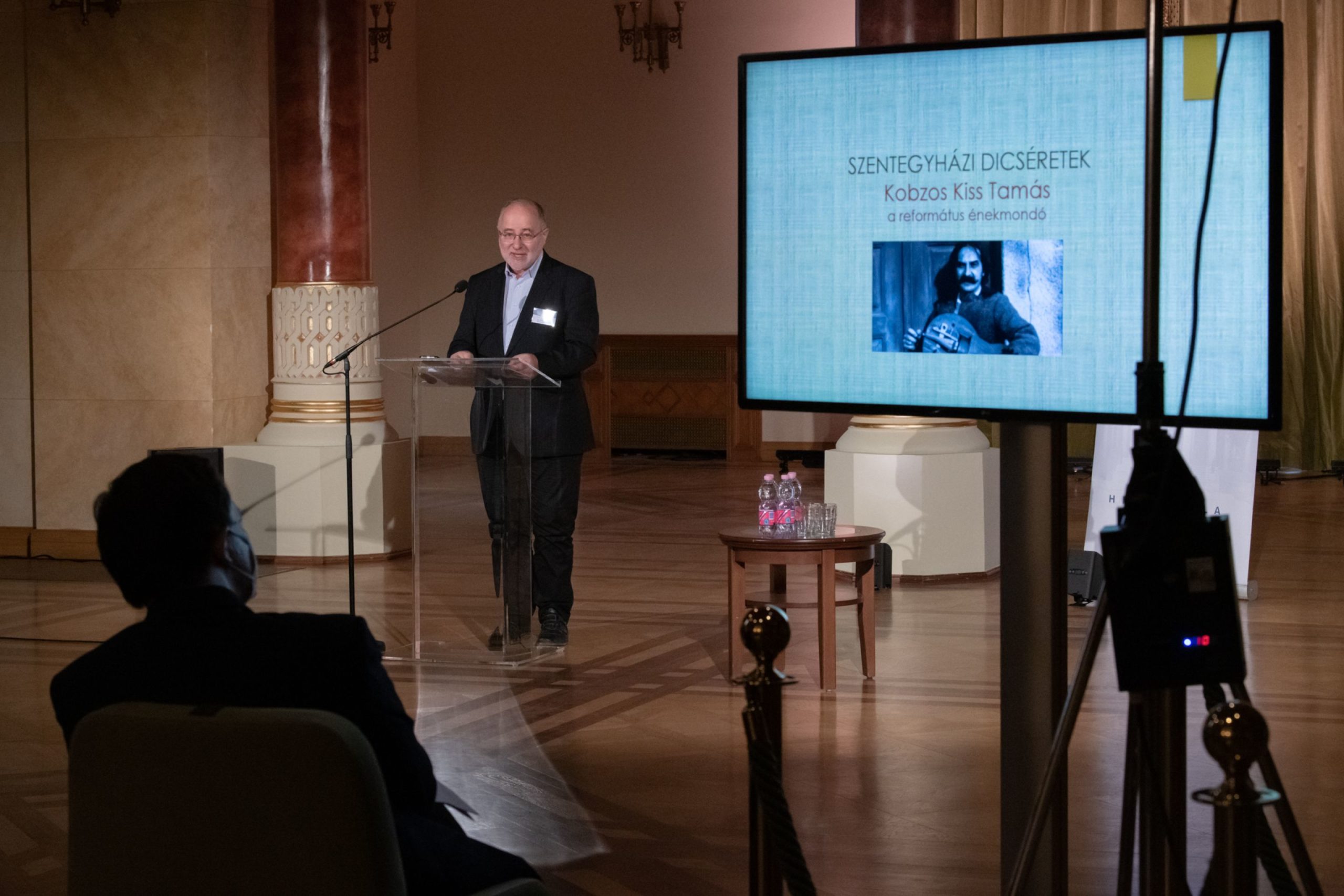 Bódiss Tamás, a Magyarországi Református Egyház egyházzenei vezetője, a Liszt Ferenc Zeneművészeti Egyetem Egyházzene Tanszékének tanára, a Kálvin téri református templom orgonistája Kobzos Kiss Tamás alakját mint a református énekmondót közelítette meg. Elmesélte, hogyan lettek munkatársak a Református Egyházzenészek Munkaközösségének vezetőségében, ennek az együttműködésnek a hozománya pedig többek közt számos protestáns énekmondó kazetta, illetve egy olyan énekverseny, amelyen Kobzos zsűritagként vett rész: itt nem csupán zsoltárt, hanem már népdalt is kellett énekelni, a gyerekek pedig a kazettamelléklet segítségével készülhettek fel az eseményre. Az előadó meglátása szerint Kobzos különleges művészegyéniség, aki műfajok határterületeit bejárva élt és alkotott. Fontosnak tartja továbbá pedagógiai tevékenységét, hiszen a művész pontosan tudta, hogyan kell megszervezni azt a közeget, ahol a leginkább lehetséges a tudás átadása.