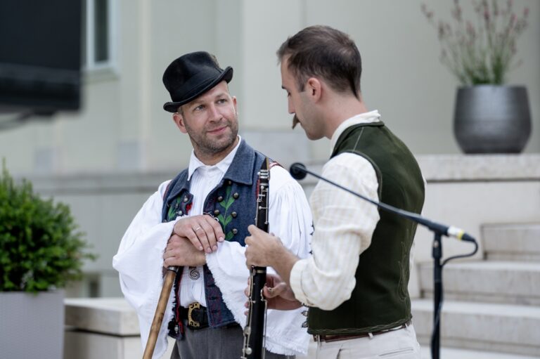 Az ünnepi programot Berecz István örökös aranysarkantyús táncos és ifj. Szerényi Béla Junior Prima díjas népzenész, néptáncos Ezüstgombosok című produkciója zárta, a résztvevők állófogadáson vettek részt a Hild-villa parkjában.