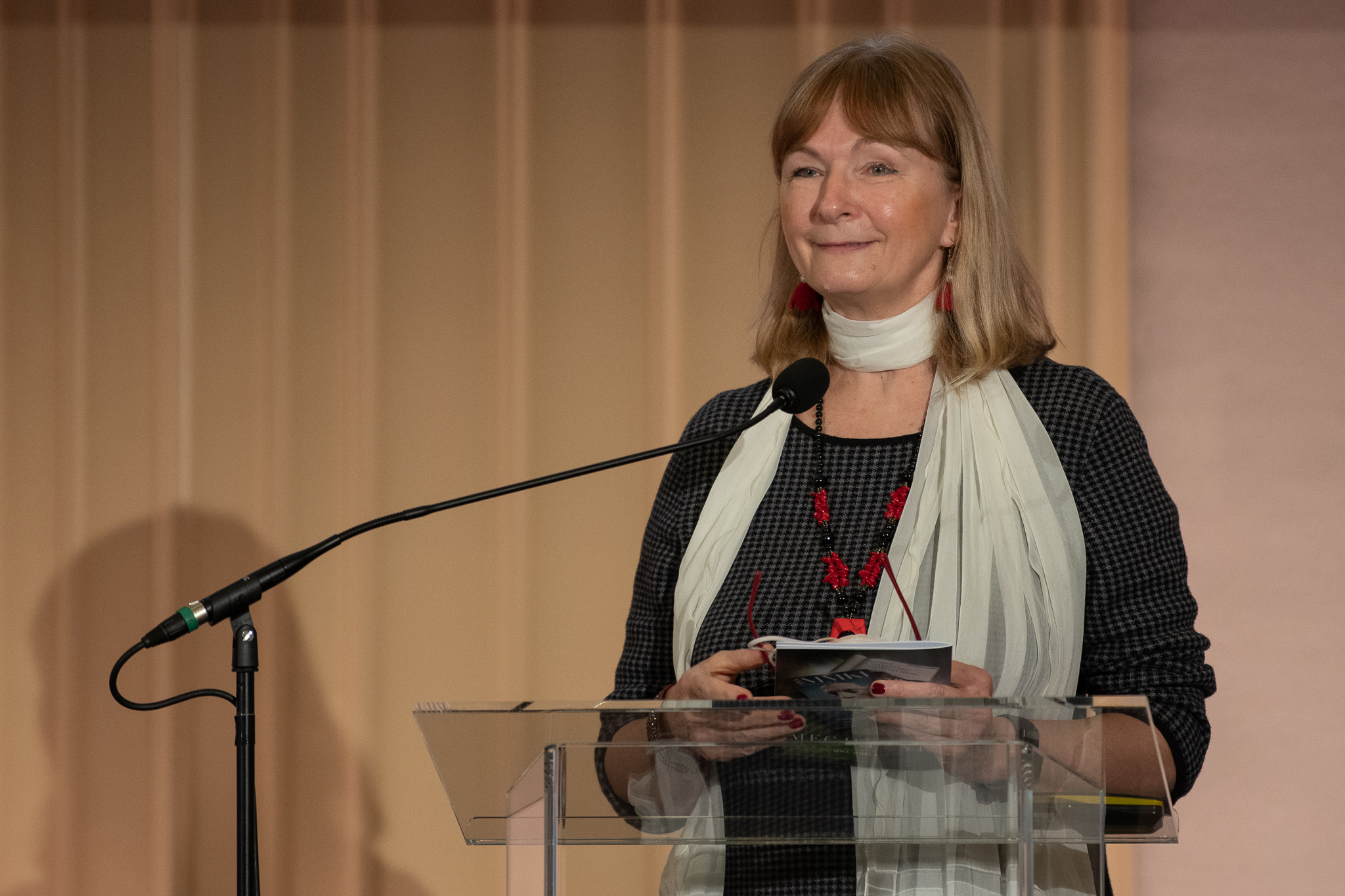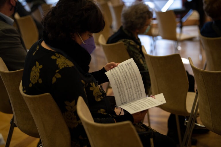 Fehér Anikó karnagy, népzenekutató, az MMA MMKI megbízott kutatója, a Nemzetközi Kodály Társaság elnökségi tagja előadása az „Örvendjen az egész világ!” címet viselte, amely Kodály Bicinia Hungarica című négykötetes, mintegy 180 kétszólamú énekgyakorlatot tartalmazó műve bevezetőjének utolsó mondata. Mint azt elárulta, Kodály ezt a négy kötetet bevezetőnek szánta a tiszta és a kétszólamú éneklésbe.