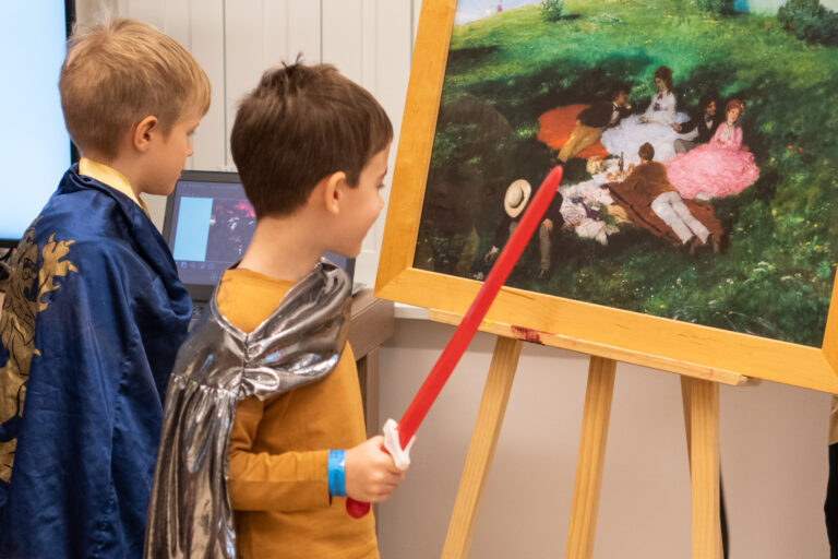 Délelőtt két ArtKoffer-foglalkozás is megrendezésre került Pénzes Boróka, a KÉPEZŐ ügyvezetője és művészeti vezetője közreműködésével. Az ArtKoffer egy művészeti bőrönd, tele csodákkal és meglepetésekkel. A foglalkozásokon olyan témákat dolgoznak fel egy-egy képzőművész életén keresztül, amelyekhez a gyerekek kapcsolódni tudnak, amely izgalmas, meghökkentő, vicces, inspiráló, tanulságos, de mindenekelőtt „művészi”. Az ArtKofferek hétköznapi témákat, kortárs problémákat járnak körül. Nem pusztán művészettörténeti ismereteket, hanem egyfajta látásmódot közvetítenek, miközben képességeket és készségeket fejlesztenek. A Kutatók Éjszakáján sorra kerülő foglalkozások egyike bemutatta Szinyei Merse Pál életét, alkotói életútját és hatását a magyar művészettörténetre, a kézműves foglalkozás során a résztvevők elkészíthették Szinyei egyik leghíresebb alkotását, egy térbeli léghajót. A másik foglalkozás Munkácsy Mihály életét és személyiségét járta körbe legismertebb és legjellemzőbb alkotásain keresztül, az alkotó éveinek kezdetétől egészen a végéig. A diákok az elméleti ismereteken kívül a kézműves foglalkozás keresztül izgalmas árverés részesei lehettek.