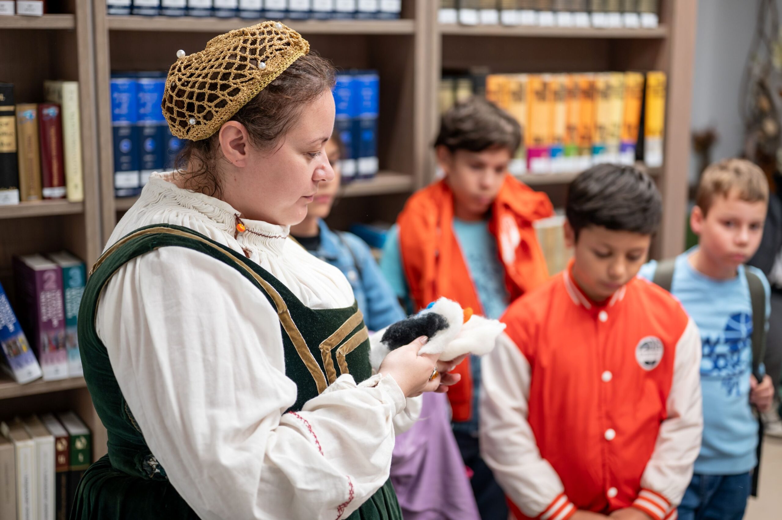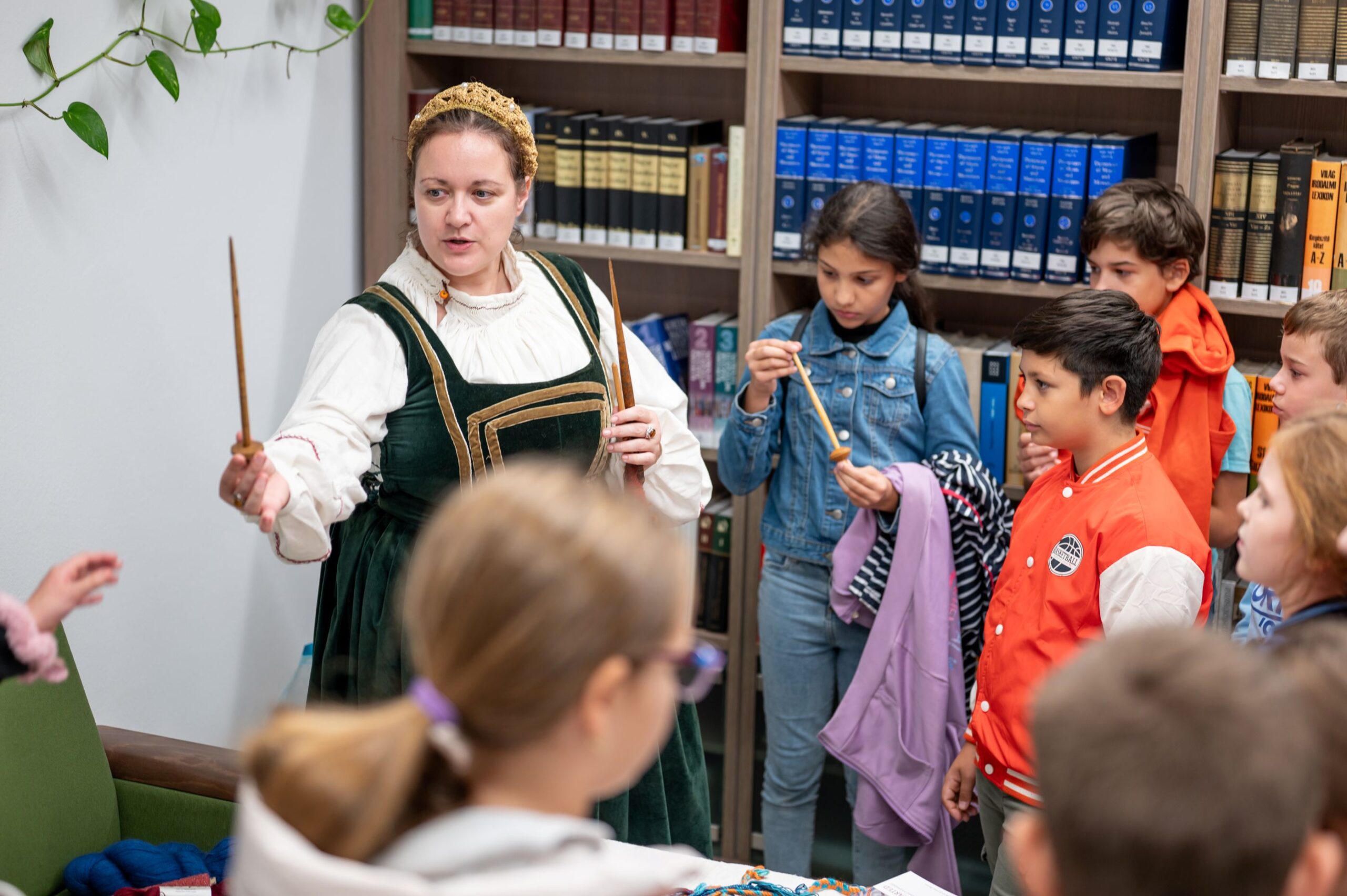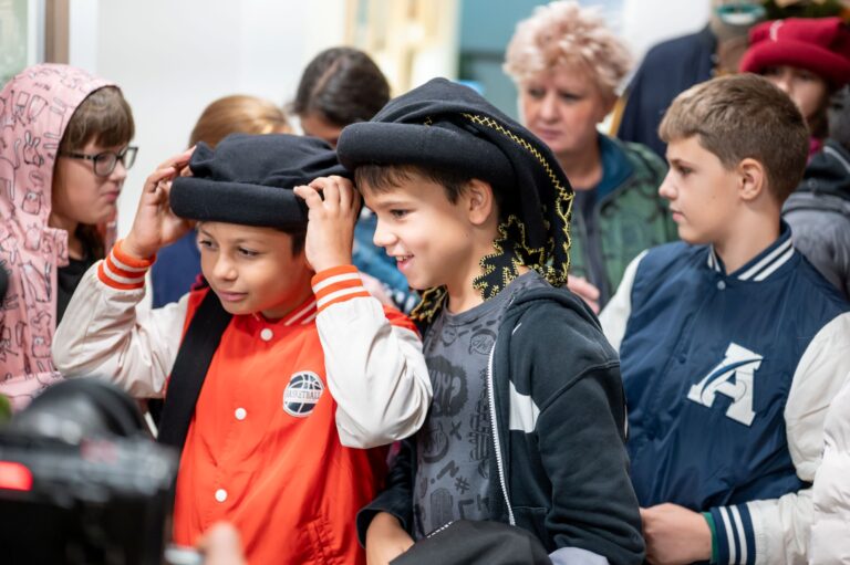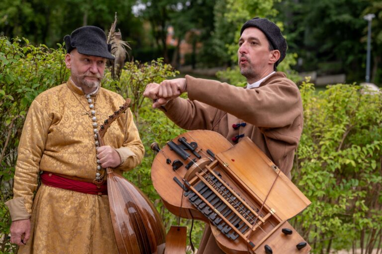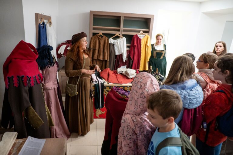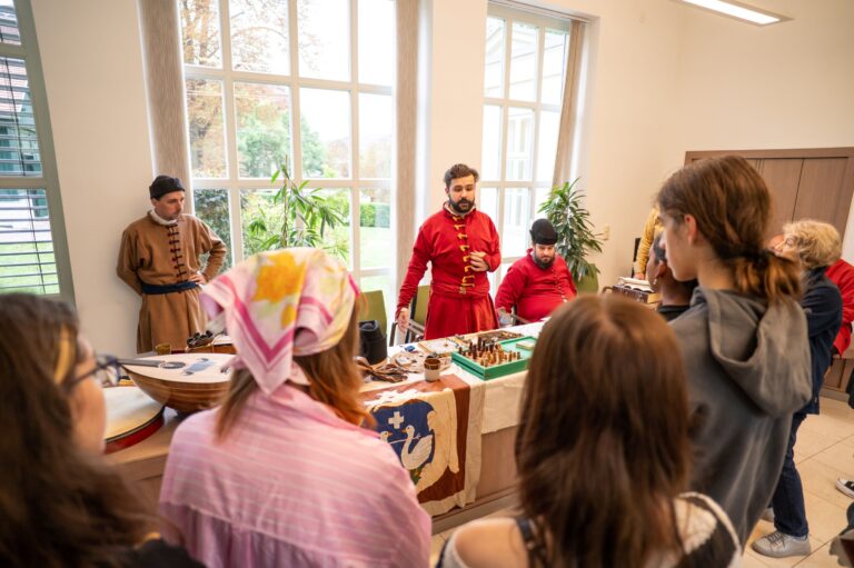 Zay Orsolya, az MMA MMKI megbízott kutatója, Erdei Lilla és Vályi-Nagy Enikő, az MMA Művészeti Ösztöndíjprogram alumni és aktív ösztöndíjas művésze izgalmas textiltörténeti utazásra invitálta a kicsiket és a nagyokat egyaránt. Míg a Bethlen Gábor Hagyományőrség játékmestere a stratégiai társasjátékok világába nyújtott betekintést, addig a Héttorony Hangászok bemutatóján a diákok testközelből tapasztalták meg hogyan szól a kürt, a síp és a dob, illetve fény derült arra is, hogy ezeknek a hangszernek milyen szerepük volt a korabeli zenében.