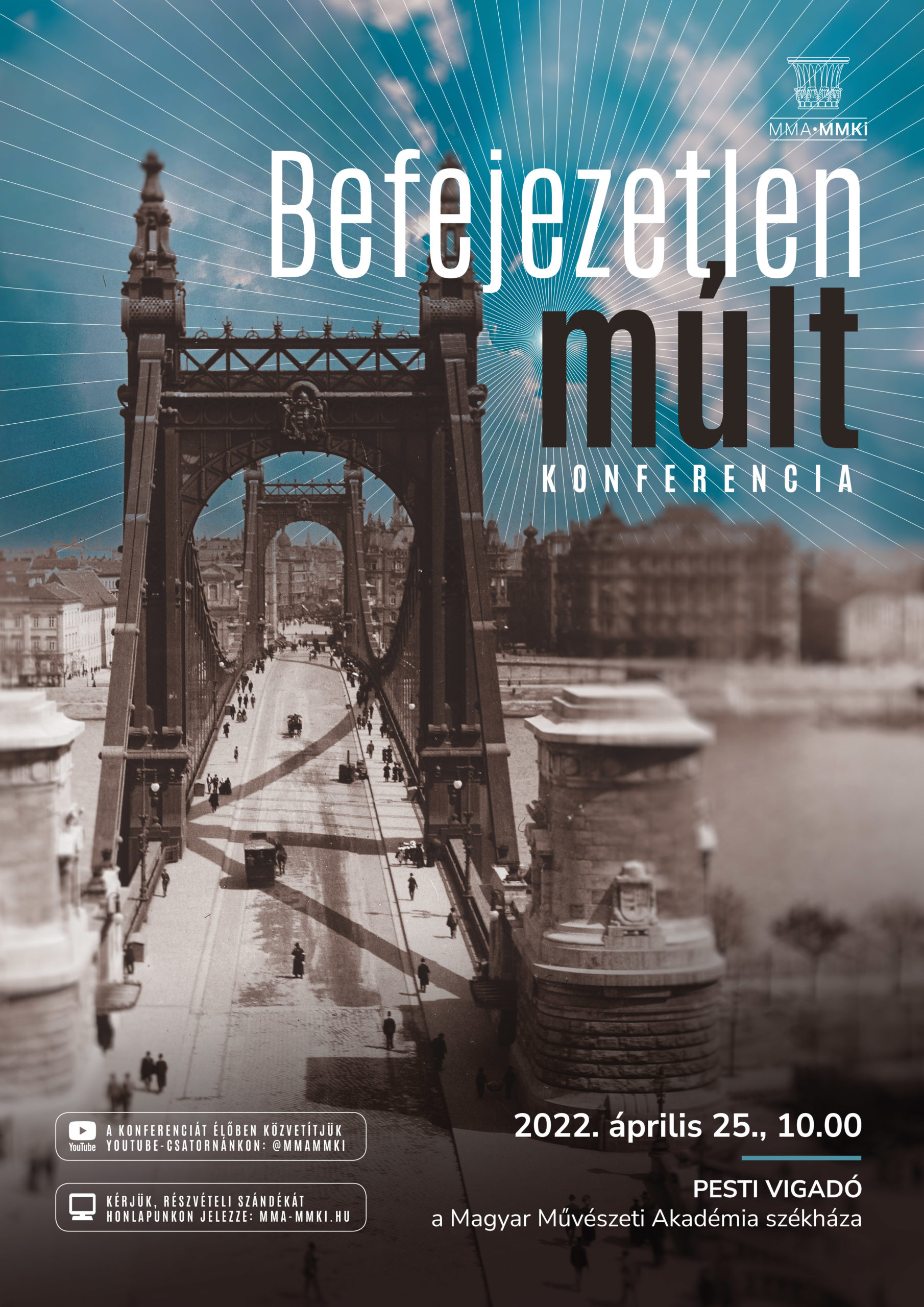 A Magyar Művészeti Akadémia Művészetelméleti és Módszertani Kutatóintézet április 25-én Befejezetlen múlt – Eszmetörténeti konferencia a XIX. és XX. század fordulójáról és ami belőle következett címmel konferenciát szervez a Pesti Vigadóban, amelyet élőben is követhet a kutatóintézet YouTube-csatornáján.