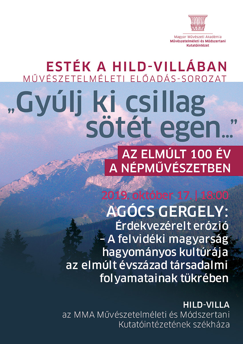 Helyszín: Hild-villa, az MMA MMKI székháza (1121 Budapest, Budakeszi út 38.)