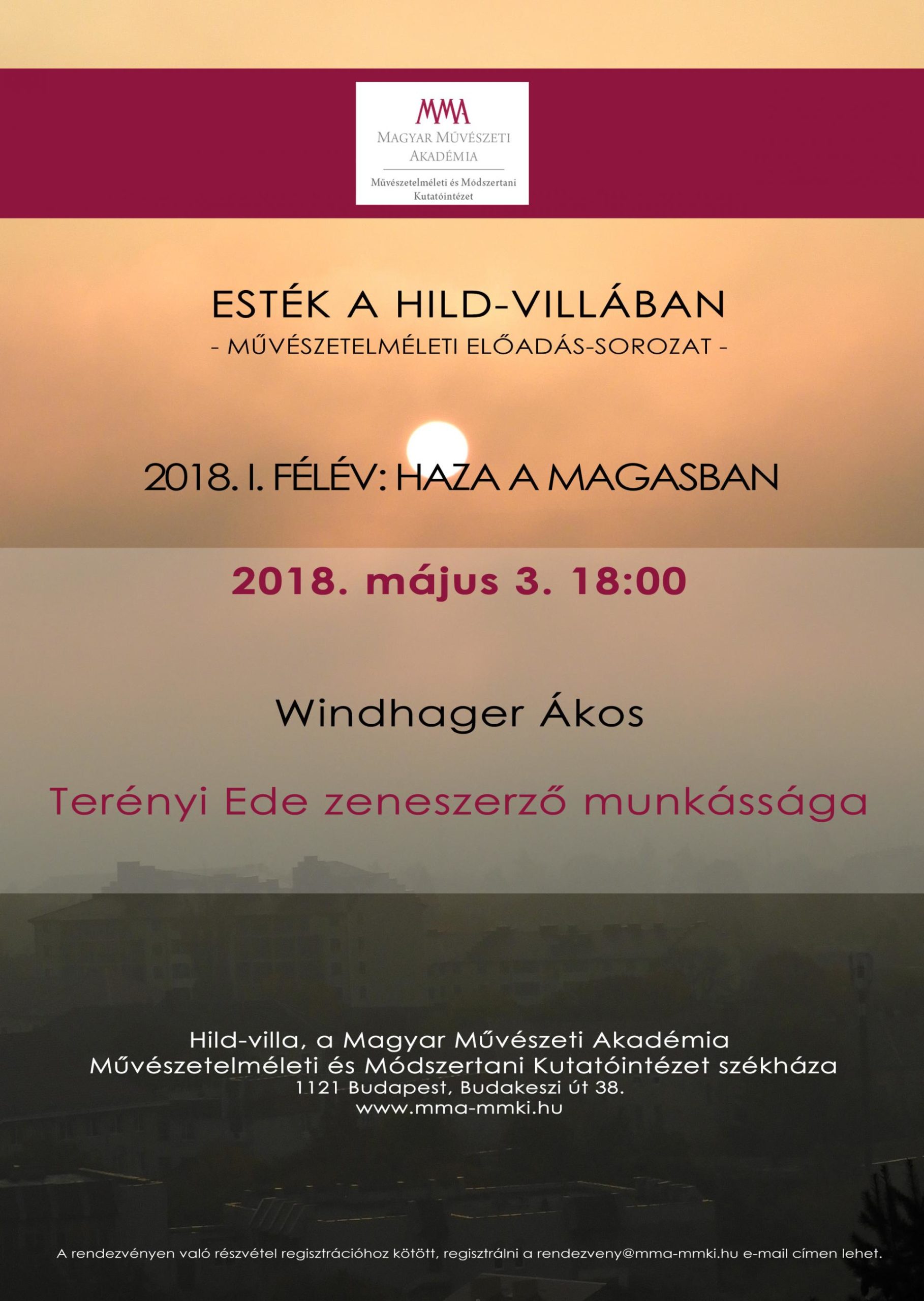 Helyszín: Hild-villa, a Magyar Művészeti Akadémia Művészetelméleti és Módszertani Kutatóintézetének székháza (1121 Budapest, Budakeszi út 38.)
