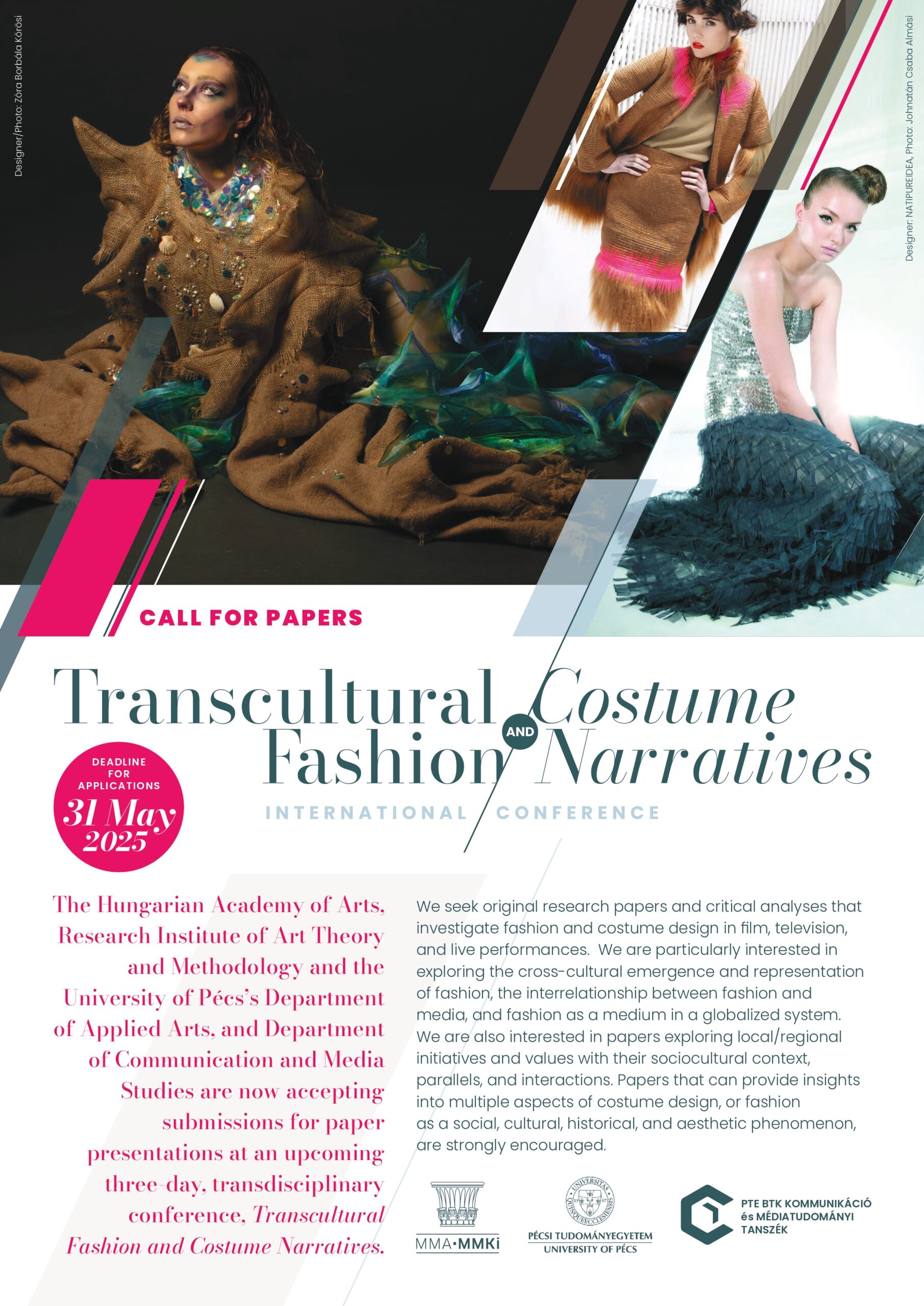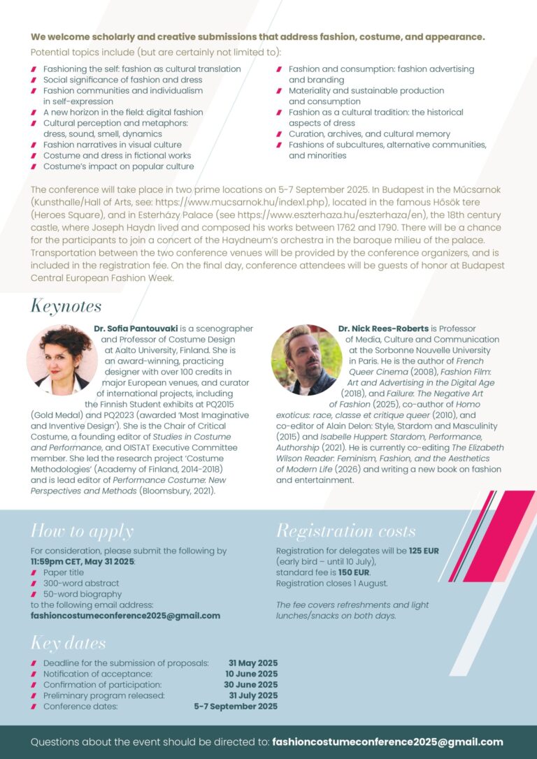 The Hungarian Academy of Arts, Research Institute of Art Theory and Methodology and the University of Pécs’s Department of Applied Arts, and Department of Communication and Media Studies are now accepting submissions for paper presentations at an upcoming three-day, transdisciplinary conference, Transcultural Fashion/Costume Narratives.